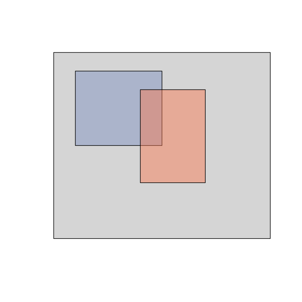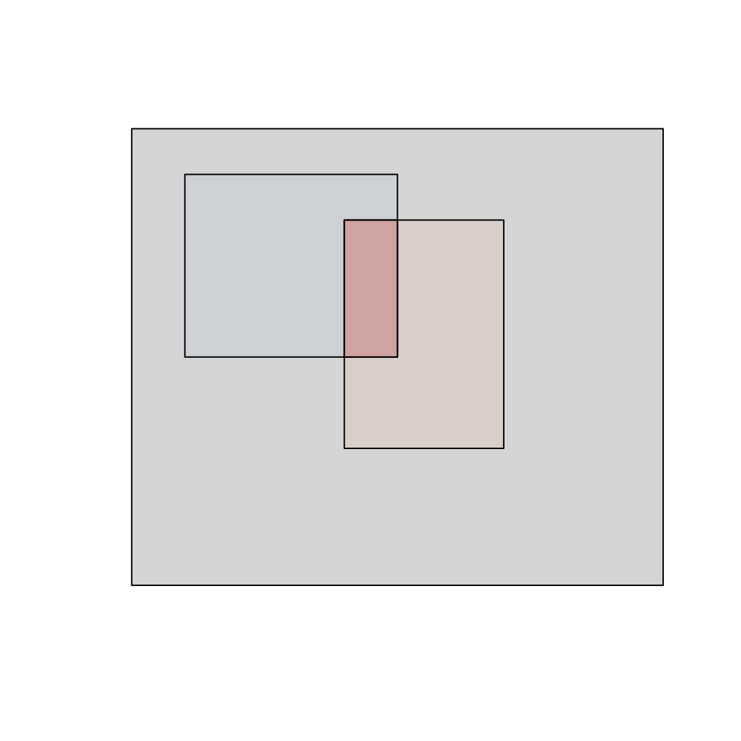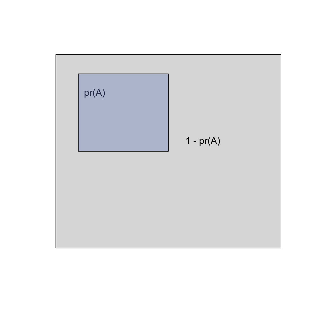 Imagine a box with a total area of 1, representing all possible