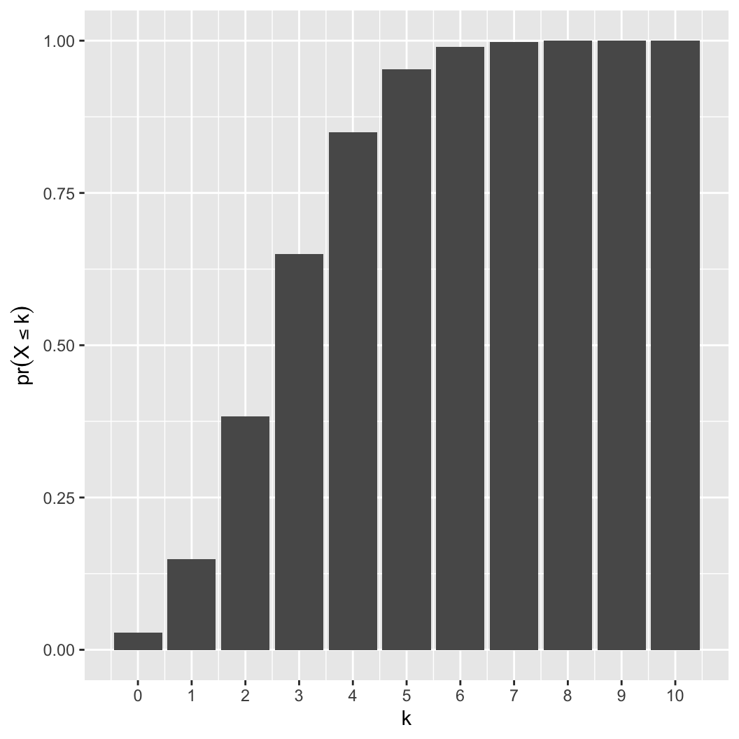 y = pbinom(k, 10, 0.3)