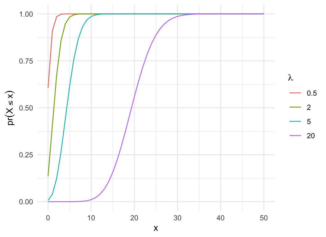 pois_dat$cdf = ppois(pois_dat$x, pois_dat$lam)