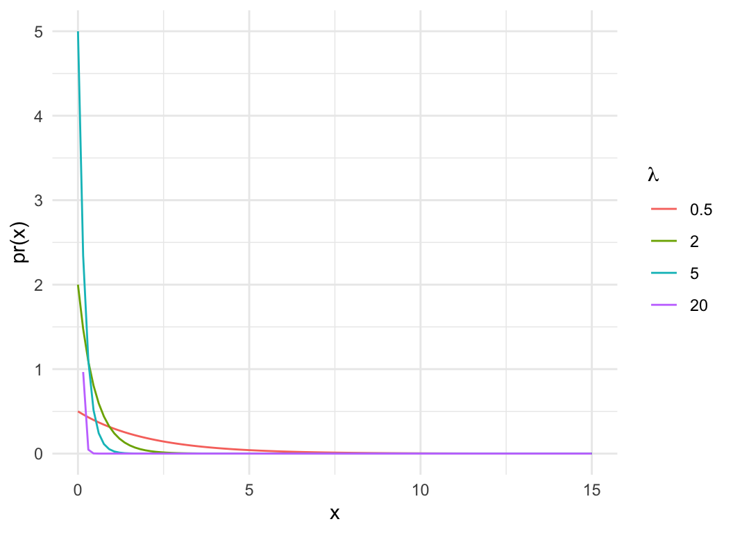 dat$pdf = dexp(dat$x, dat$lam)